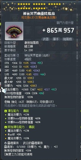 25星、滿捲、武公(30%無視)、雙傳說、星火+92魔攻(T4)& 8%BOSS(T4)