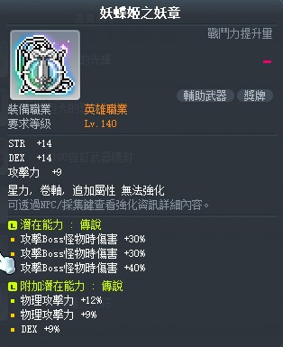 【妖蝶姬之妖章】主潛能100%B附加21%物英雄副武器4999不實收