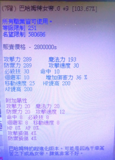 巴哈姆特女帝G+9(頂官屬性)畢業神寵 便宜又好用哦 小窗