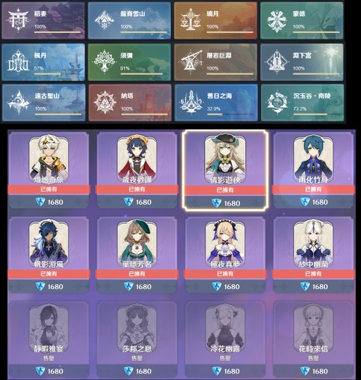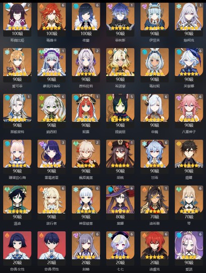 【女、60等、63金角、39金武】13隻滿命 6+1火神 水神 少女 絲柯克 夜蘭 多關鍵命座