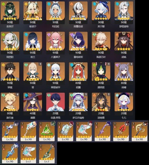 【女、60等、24金角、11金武】42金_奈芙爾專_雷神專_胡桃專_水神專_夜蘭專_已畢業_可議價