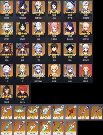 【女、60等、26金角、14金武】58金_僕人專_C1水神專_C1胡桃_神里專_雷神專_C2萬葉_已畢業_可議價