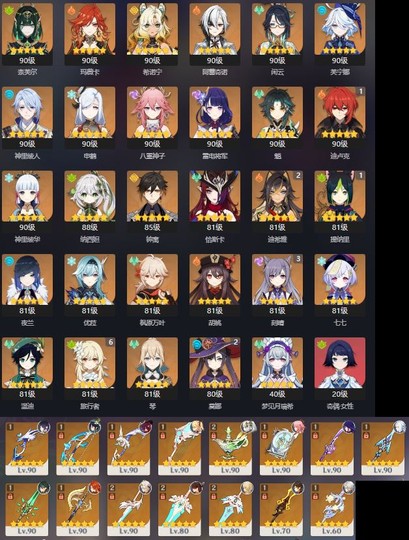 【女、60等、30金角、15金武】59金_5神_奈芙爾_西諾寧_雷神專_夜蘭專_草神專_已畢業_可議價