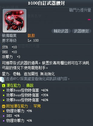 【D100自訂武器腰封】主潛能115%B附加15%物6%敏凱殷副武器4999不實收
