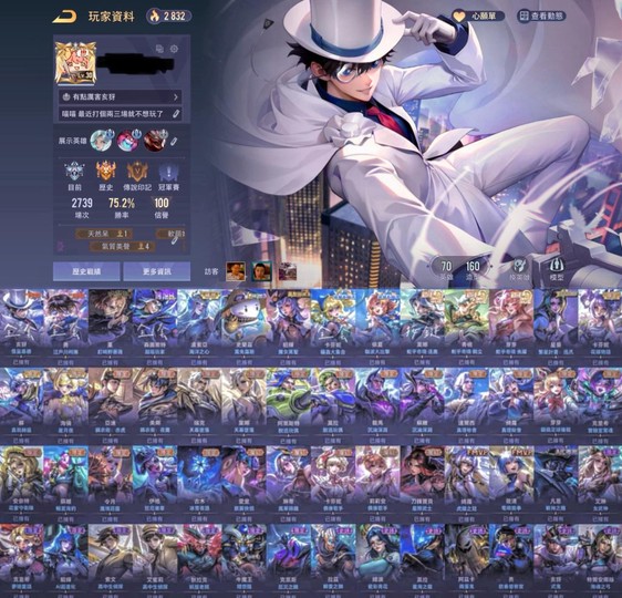 歷史璀璨傳說(現鑽石) 75%高勝率 單電秒改良綁 160多造型 多頭像、頭像框