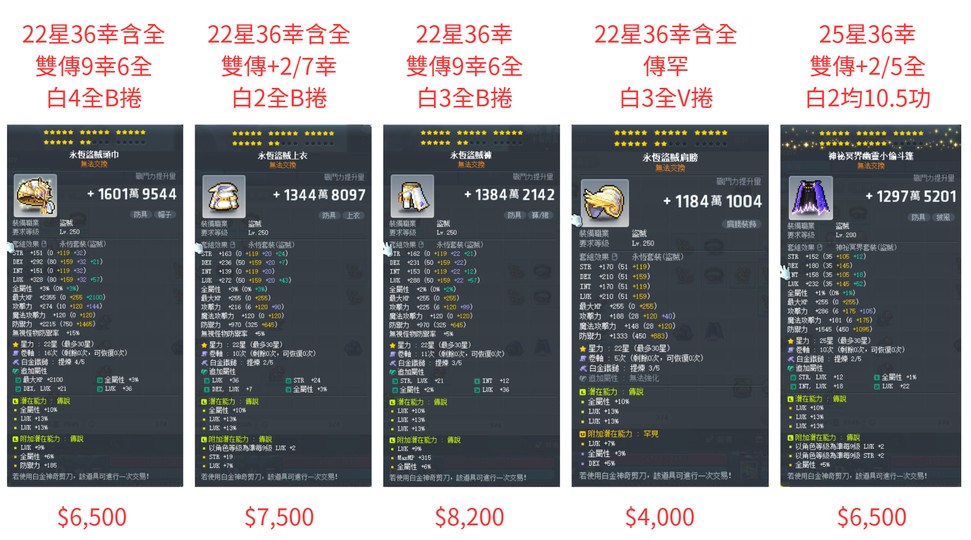 【%幸 退谷】幾乎都次頂大雙 25星頂培一套、天上、22星永恆頭/上下衣/肩膀、25星神秘披風