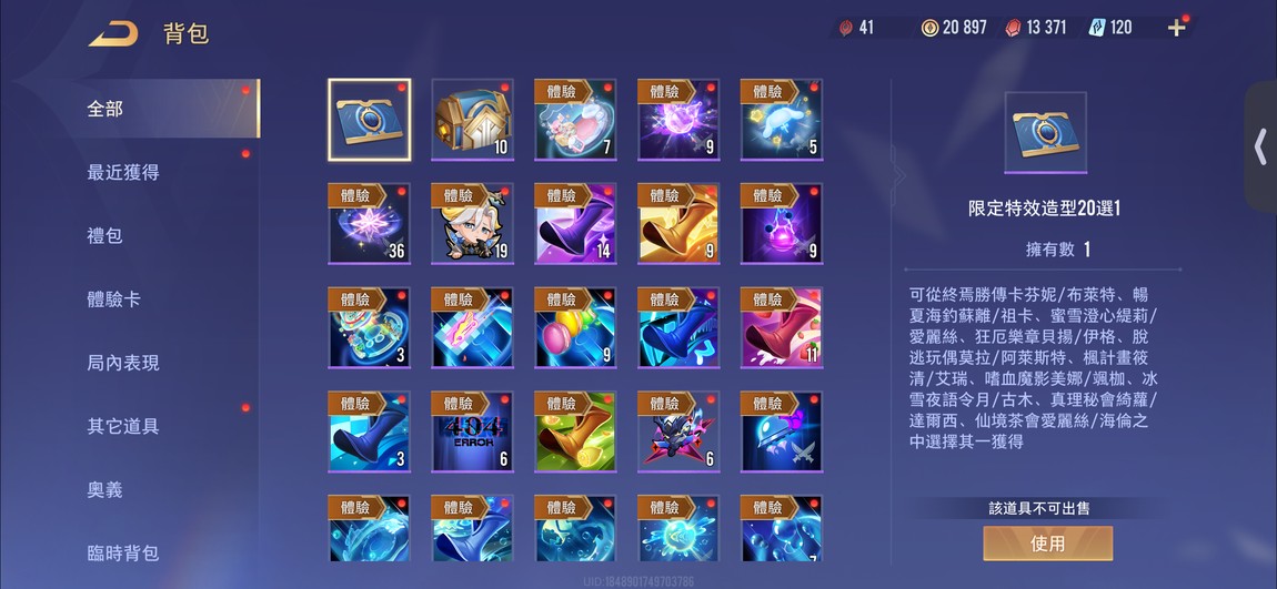 物品種類: 帳號