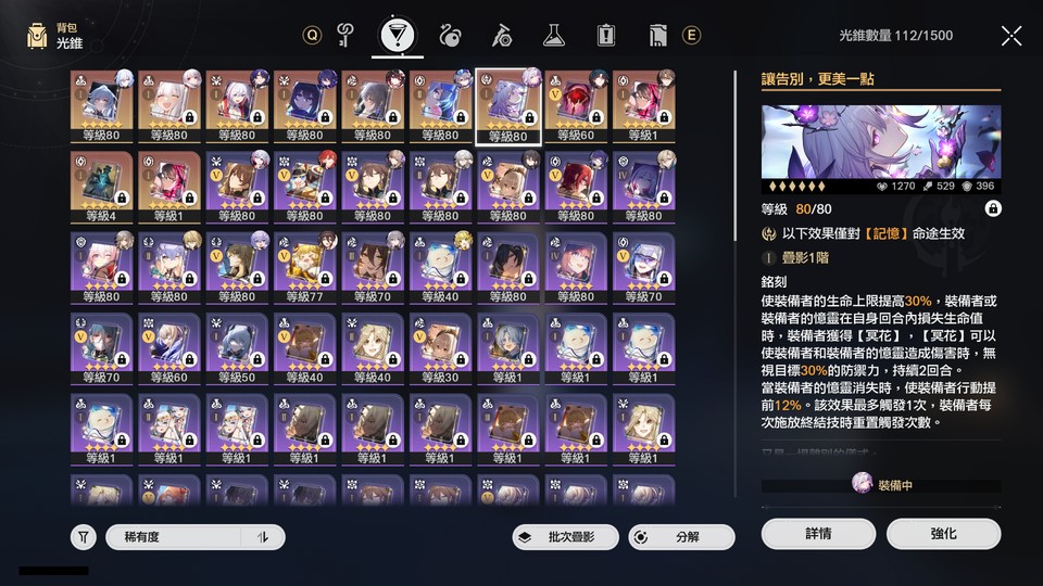 帳號內角色與光錐如下所列