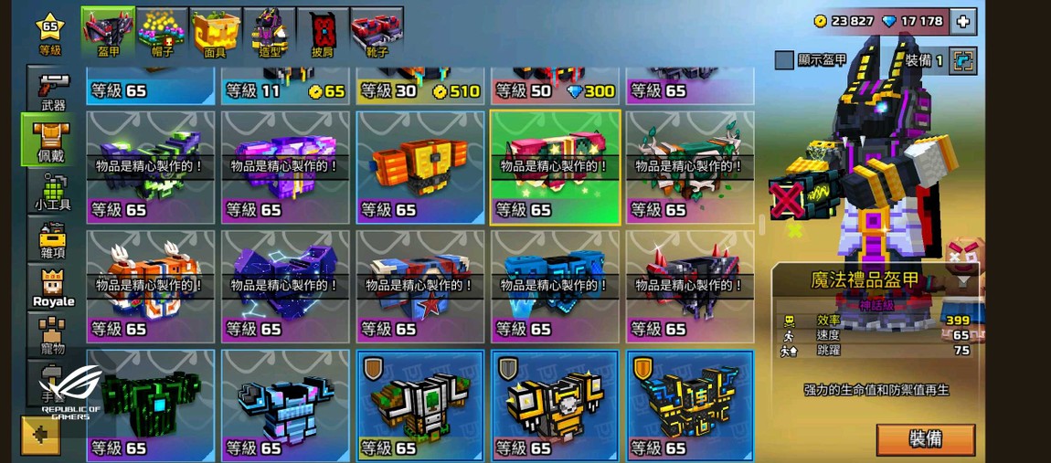 1000元 裝備全部(護甲/頭飾/面具/背飾/靴子)