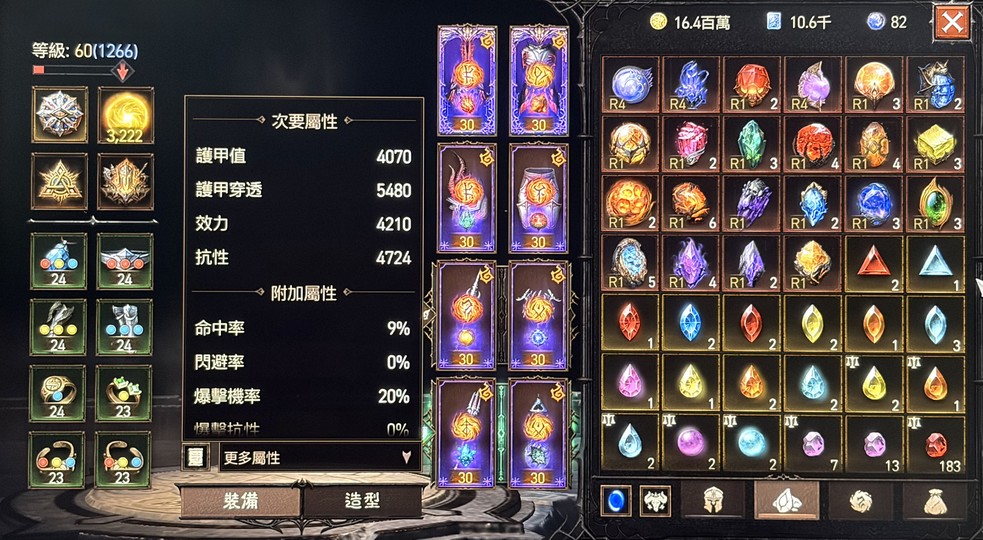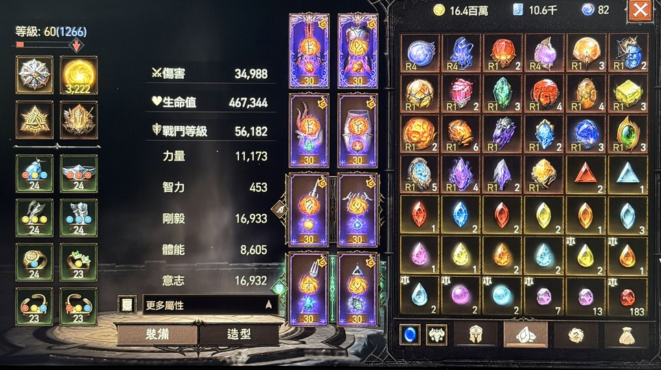 血騎士,共鳴3222,戰等56182,等級1266,各項數值持續增加中。