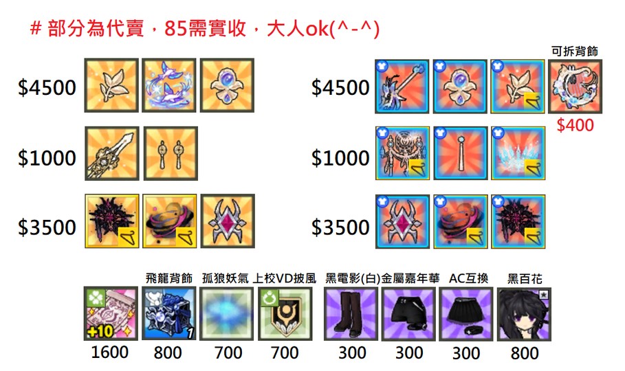 0117× 出清時裝/雜物/散件 艾拉澄愛莎菈比艾索德諾亞 退艾/退坑
