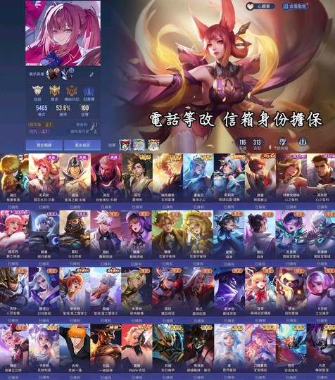 【Garena帳有綁定、鑽石、V9、116英、313造】善逸 鏡花 沈香 永曜 天啟 靈煌 玄冥 凝華 朔月 窺海 花蜜 合金 三典藏