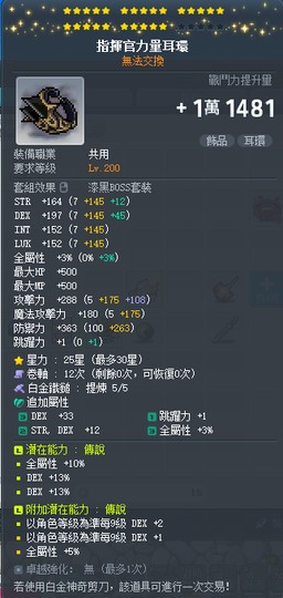 【指揮官力量耳環】雙傳25星36%敏指揮官力量耳環 附加2.5排 白5全b~