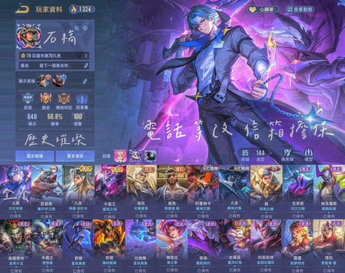 【Garena帳有綁定、璀璨傳說、V7、85英、144造】凡恩次元 歷史璀璨 高勝率