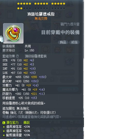 挑戰者符賣17星 40趴掉落加20楓掉頂培戒指
