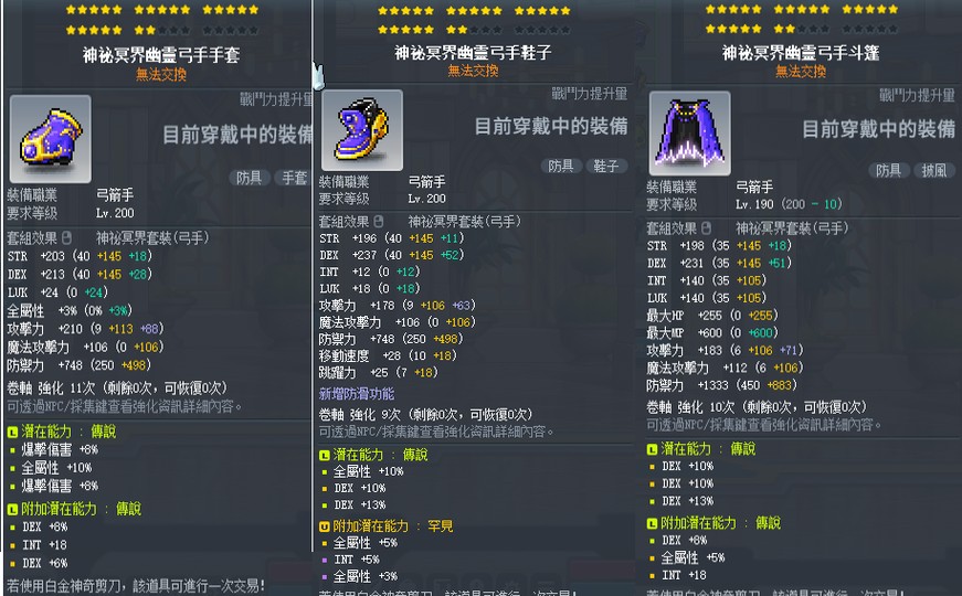 神秘:神秘披-3400 神秘手-3500 神秘鞋-3000
