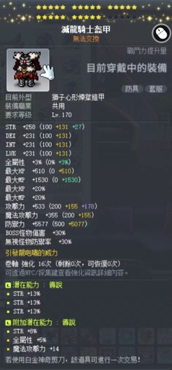 【滅龍騎士盔甲】25C白5均11.1攻 上頂%39%力 附加雙傳大雙排