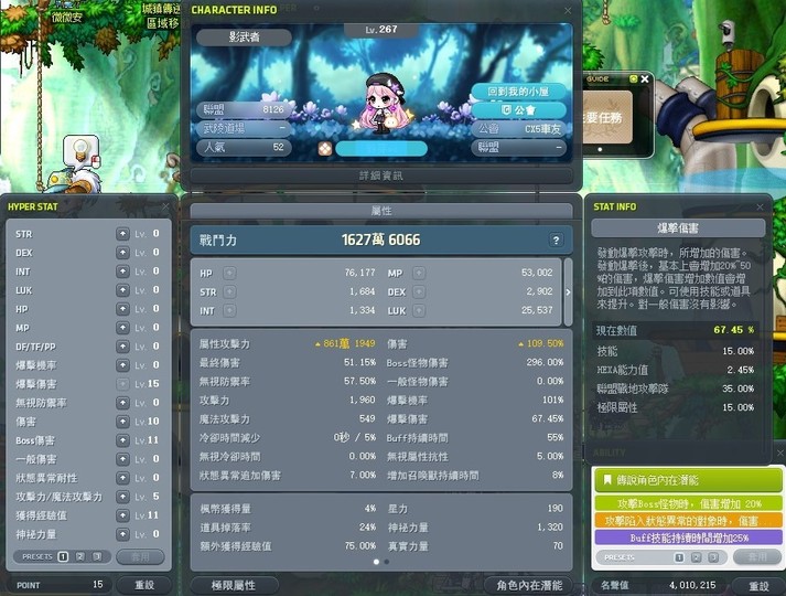 【267等、影武者、8126戰地、70AUT】+262暗夜。名匠/雪皮稱號/嘎波/里程包/五子帳
