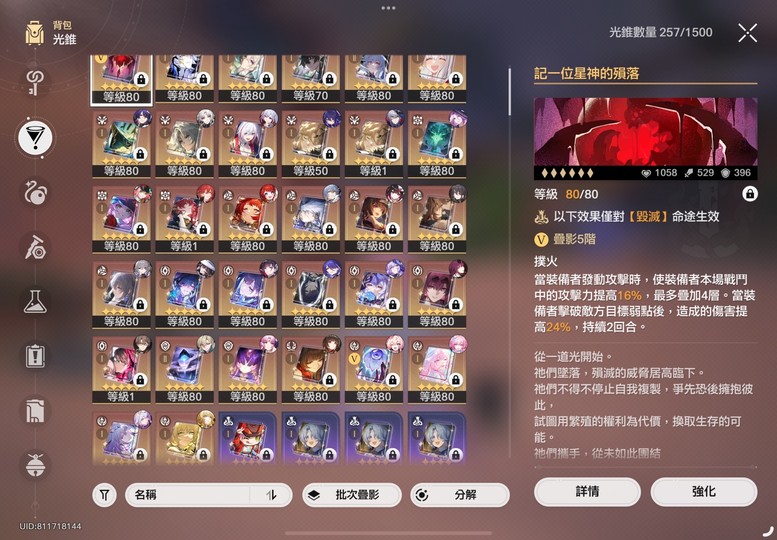 亂破、緹寶、白厄、大理花、靈砂、鏡流、阿格萊雅、星期日、黃泉、飛霄、丹恆•飲月