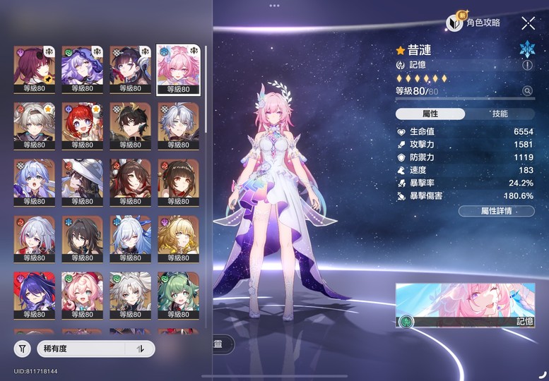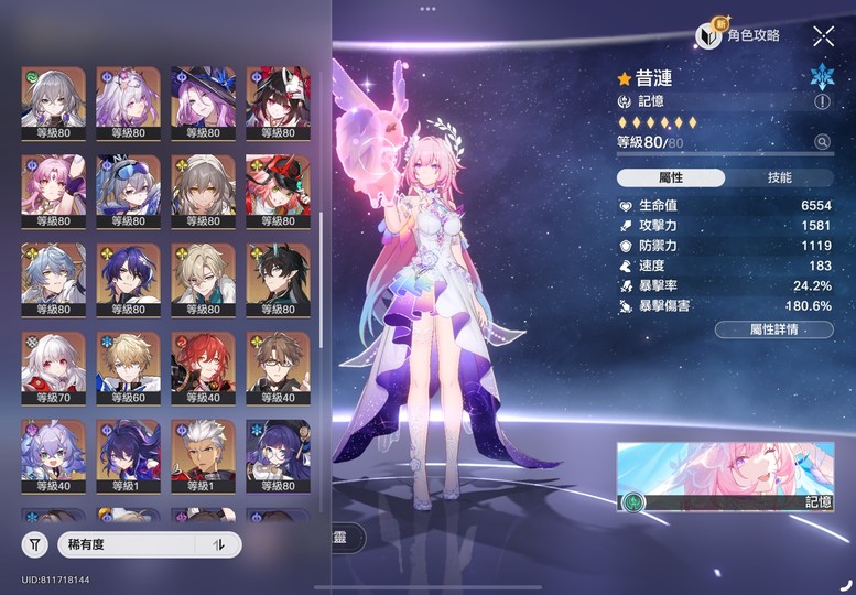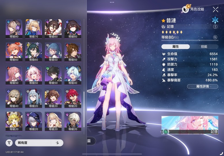 【女、70等、39金角、32金專】崩鐵亞服70等 多體系隊伍