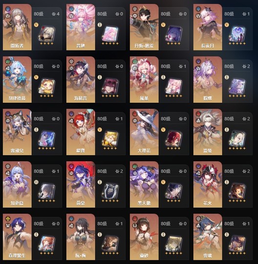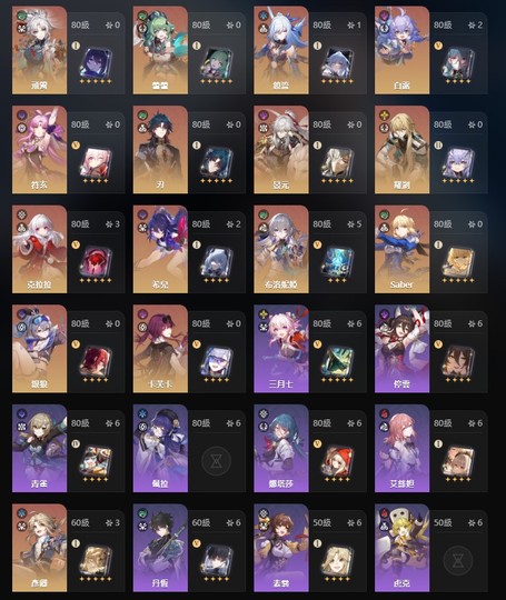 主C面板練度都很高 有效詞條基本都30+ 要看的話可以用鐵道工坊幫您看 遊戲內資源基本也都用不完 金靈x2
