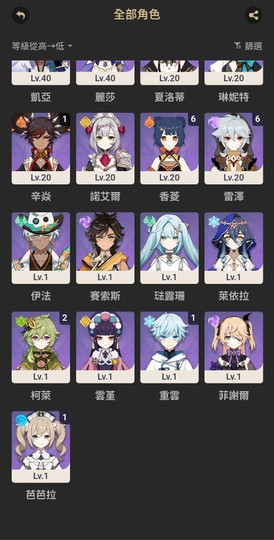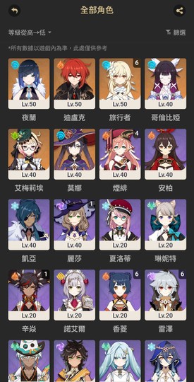 【女、53等、6金角、4金武】0+1月神少女哥倫比婭 0+1夜蘭 0+1艾梅莉埃調香師 武器池滿定軌 有回歸