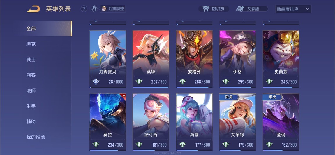 【Garena帳有綁定、鑽石、無VIP、120英、235造】售 愛里 文鰩