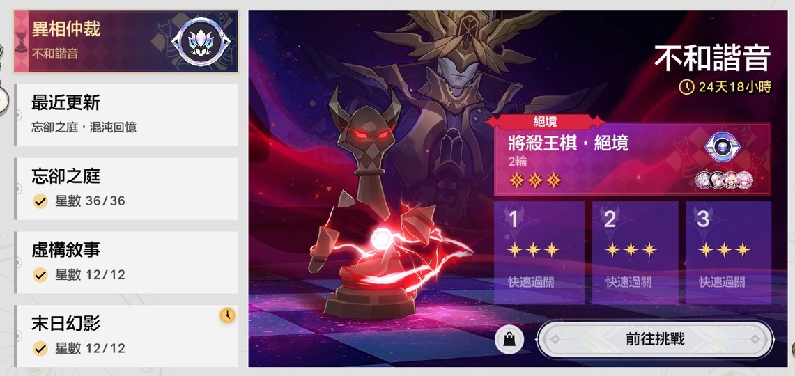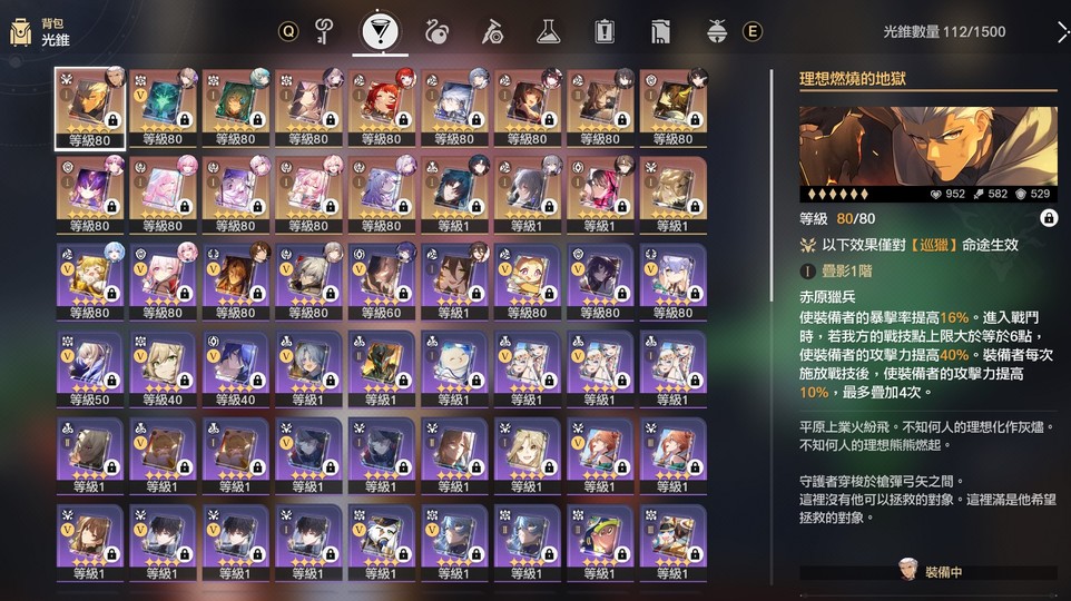 角色遺器之類的都幫你刷到畢業了,可以直接組出4隊(記憶隊、大黑塔隊、那刻夏隊、Archer隊)