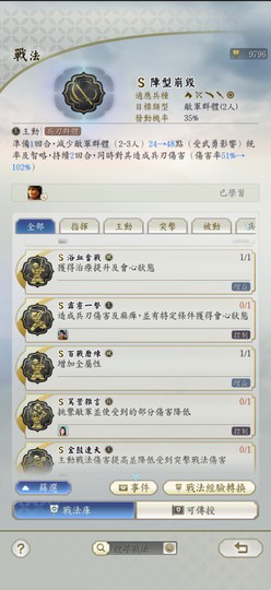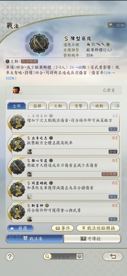 如圖展示,S戰法、紫將、事件戰法幾乎都有!
