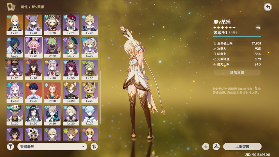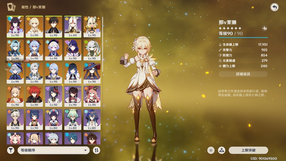 【女、60等、39金角、15金武】高練號,5+1優菈(這次勵行做完就6+1了)草神2+1、龍王2+1、雷神3+1