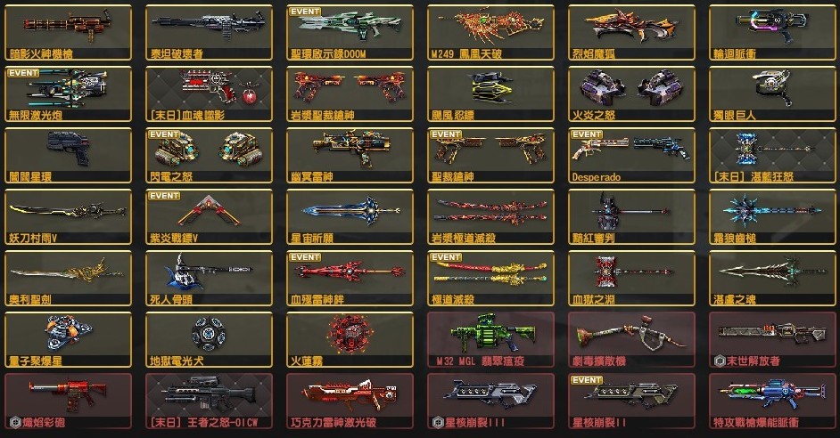 【5史詩武器、70王牌武器、41王牌角色】4件套蛇神龍神天穹戰戟惡魔雷暗影火神魔狐特典星核 已更新
