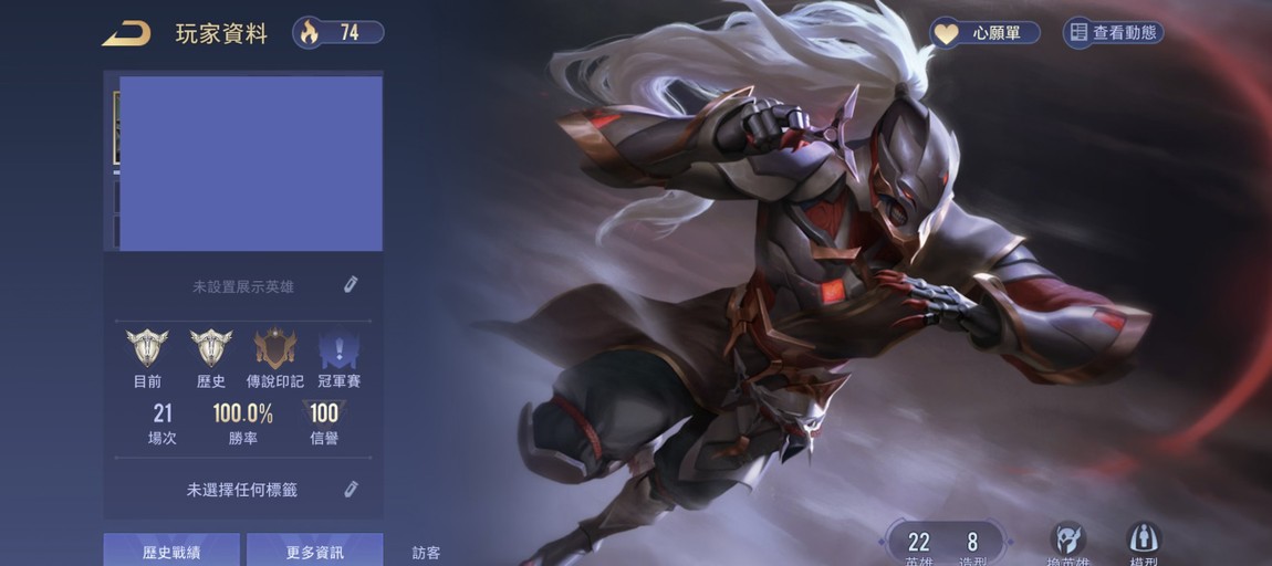 【Garena帳無綁無連、鉑金、無VIP、22英、8造】百勝鉑金