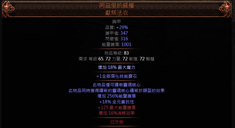 【胸甲、阿茲里的威權 獻祭法】頂素質 能量護盾