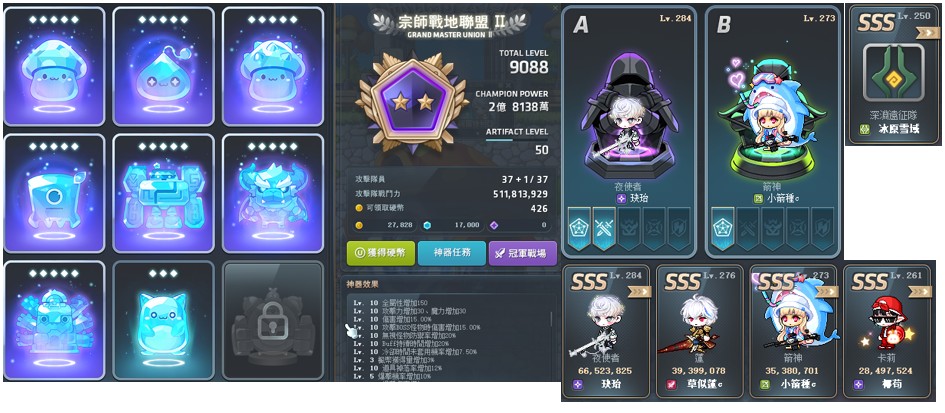 9000戰地、多隻高等角、有276等的連、有神器聯盟冠軍