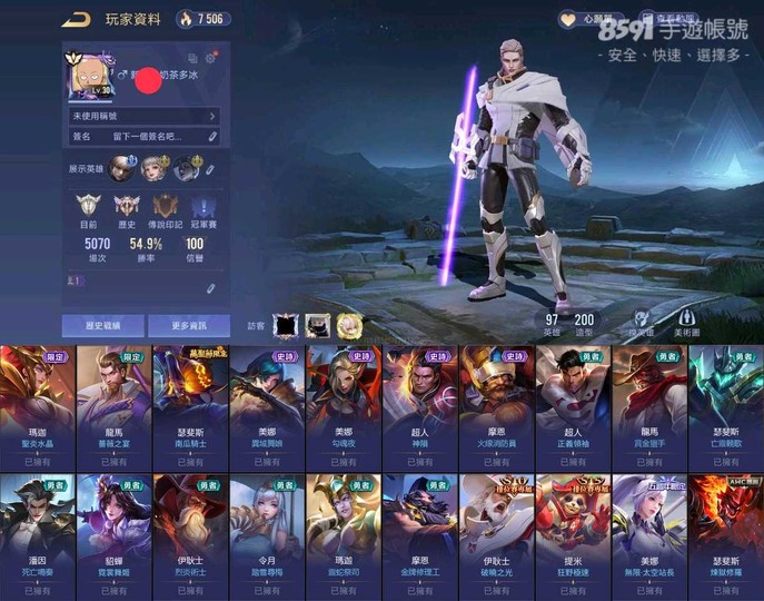 退遊不玩 v7帳號 90英雄 200造型