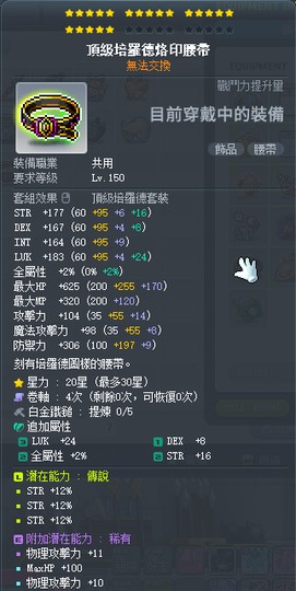 【頂級培羅德烙印腰帶】20星頂36%力頂腰 附加稀有 不實收