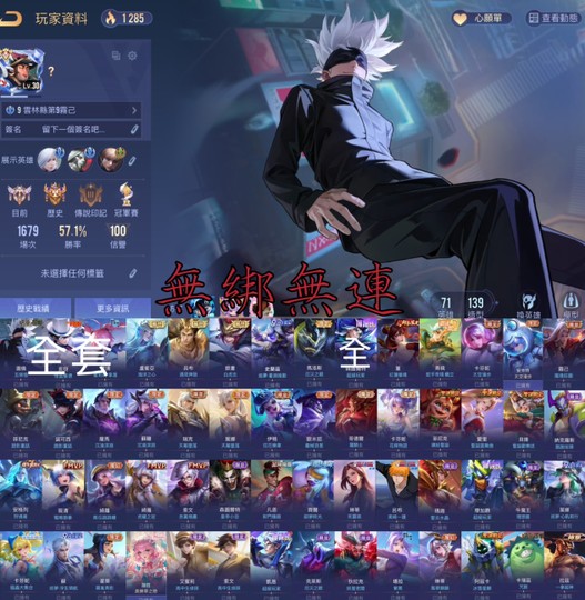 【Garena帳無綁無連、璀璨傳說、V7、71英、139造】五條 蜜莉姆 基德 白虎 神鼓 傳說日 9週年 厄災 太空 深淵 光幕 一拳