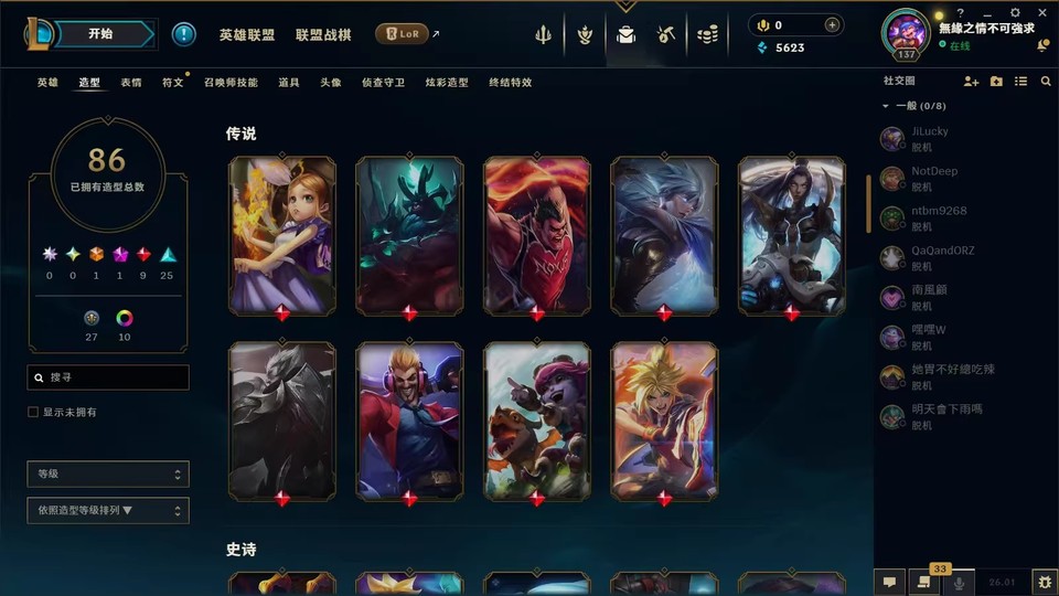 英雄聯盟台區lol臺服86皮膚134英雄LOL台服【未綁】
