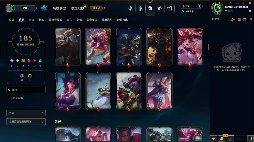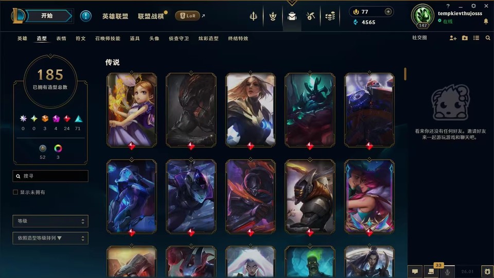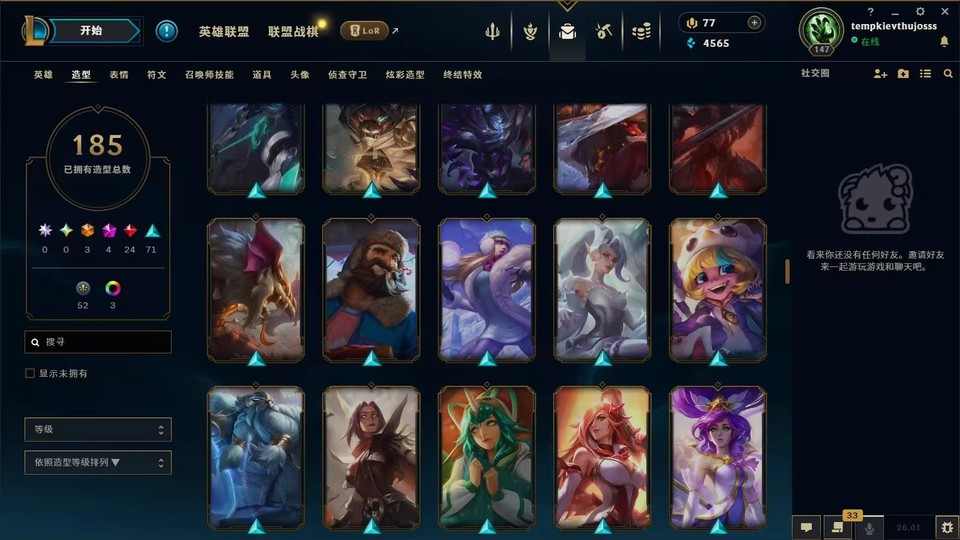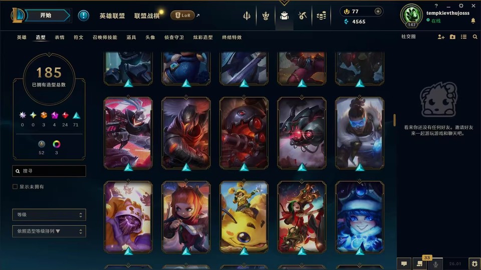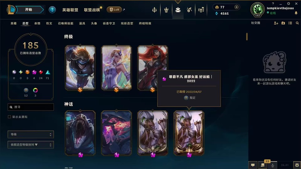 【147等、未定級、106英雄、185造型】185皮膚106【未綁】 可轉區,日服,歐服,東南亞服,越南服,等。韓服美服不行
