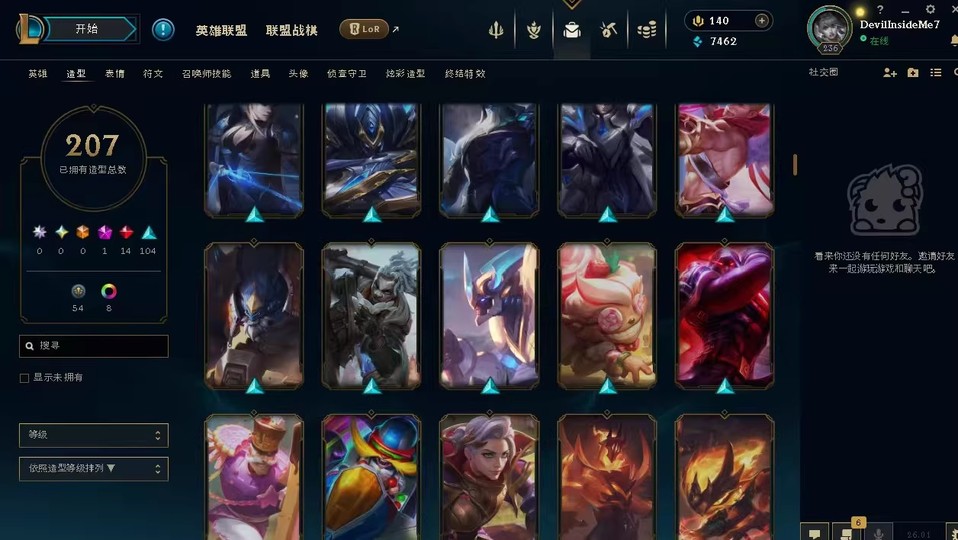英雄聯盟台區lol台服207皮膚141英雄LOL台服【未綁】