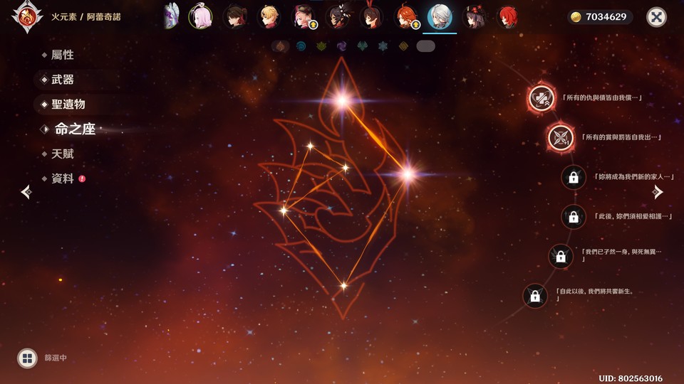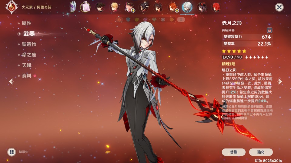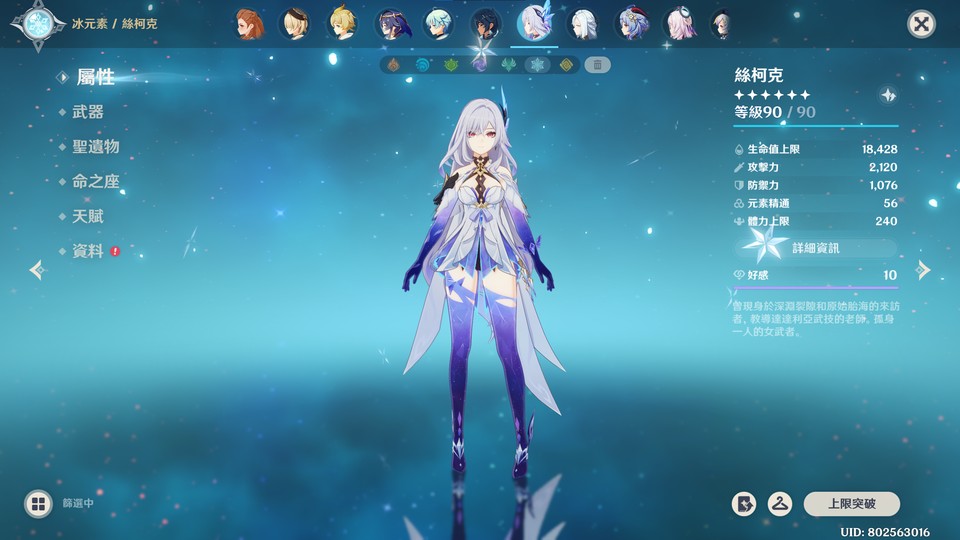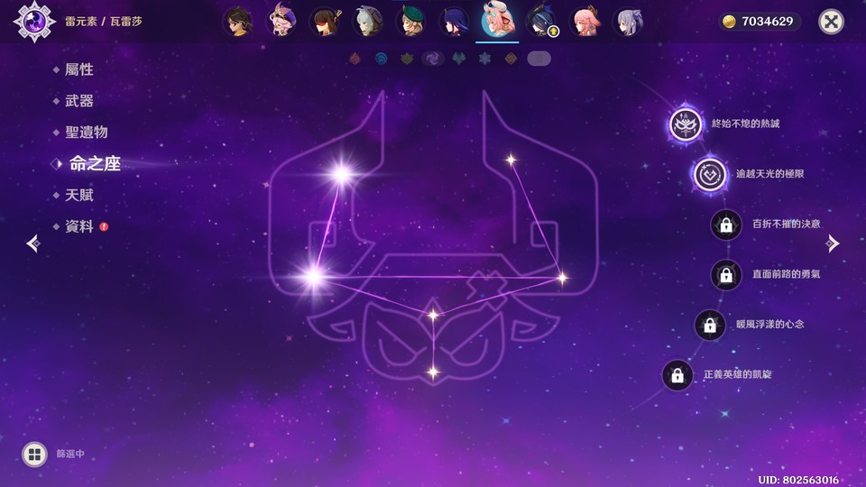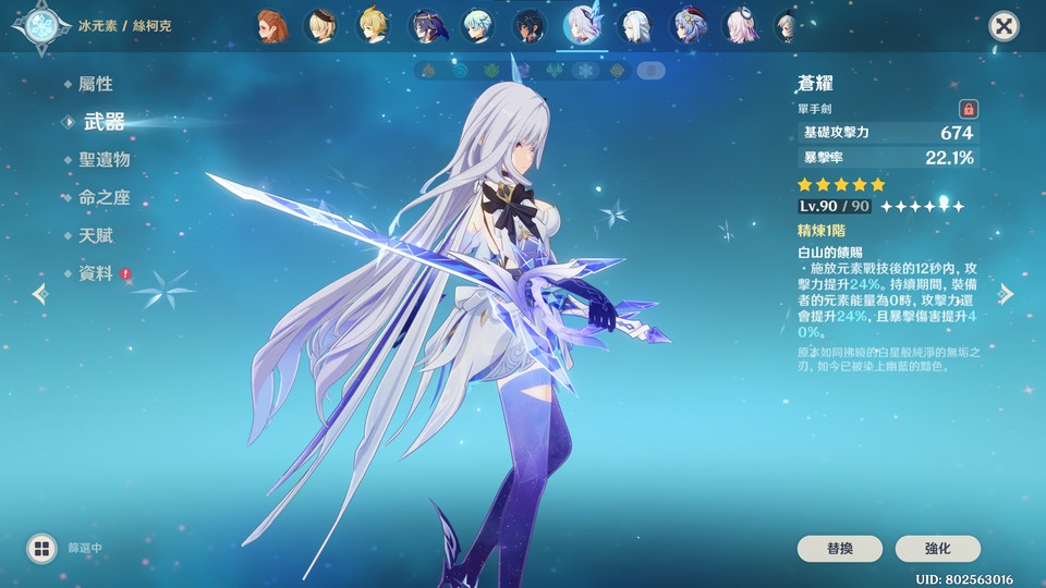 個人開服帳,角色資源多,因無暇管理故割愛求售,以下為本帳號五星角色,瑪薇卡0+1、阿蕾奇諾2+1、胡桃1+1、迪盧克6+2、迪希雅、可莉、夜蘭1+1、莫娜4+0、那維萊特、妮露、達達利亞、芙寧娜、納西妲、提納里、奈芙爾、菈烏瑪、雷電將軍0+1、瓦雷莎2+0、八重神子1+0、刻晴5+0、克洛琳德、閒雲2+0、琴3+1、溫迪、恰斯卡、魈、楓原萬葉、斯柯克0+1、甘雨1+1、七七3+0、茜特菈莉、申鶴、希諾寧、阿貝多、鐘離