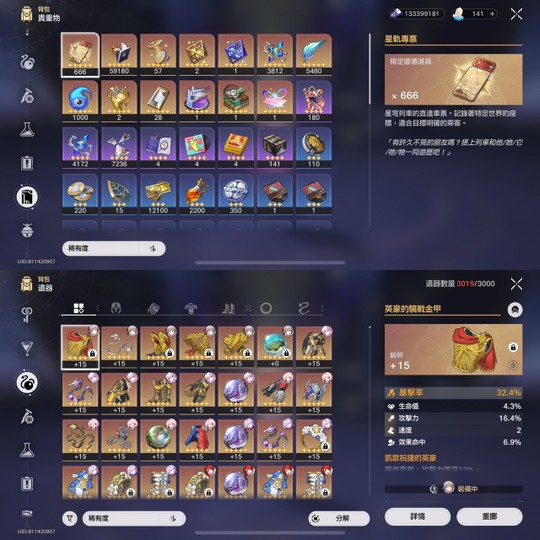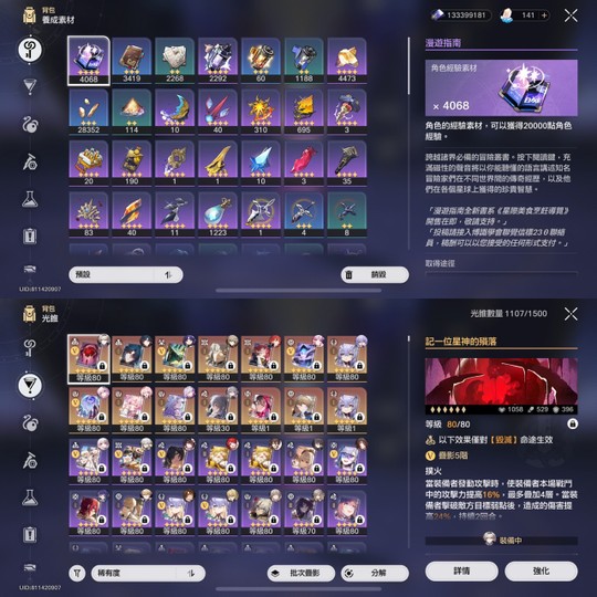 【女、70等、19金角、14金專】856抽專票 遐蝶21風堇11緹寶10長夜月 流螢20忘歸人 超多資源
