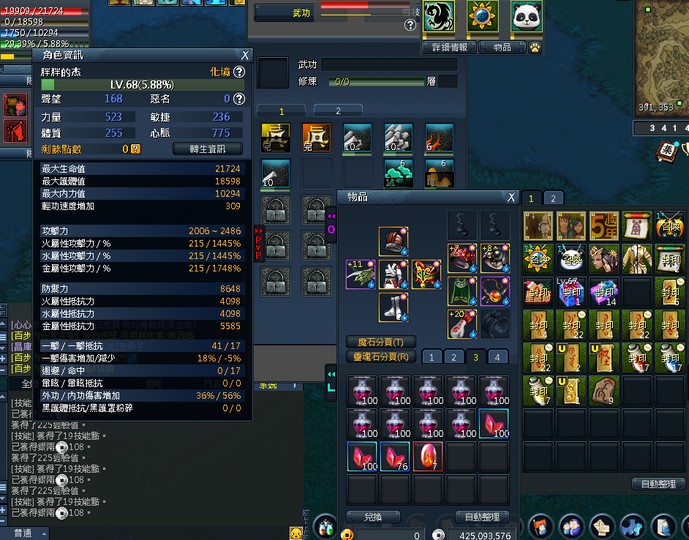 目前裝備寶石強化是力量跟攻擊力都50+ (屬性點是心脈)
