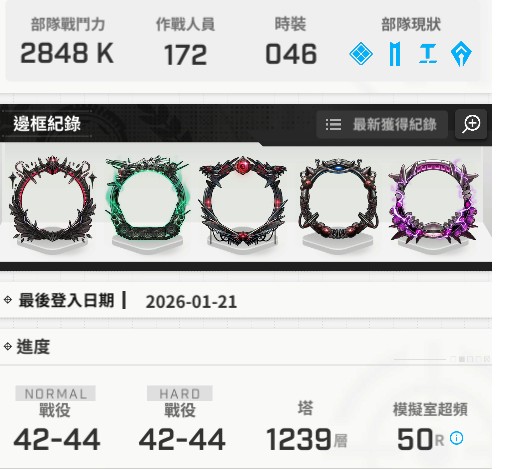 其他需要詳細練度可私看巴拉巴拉
