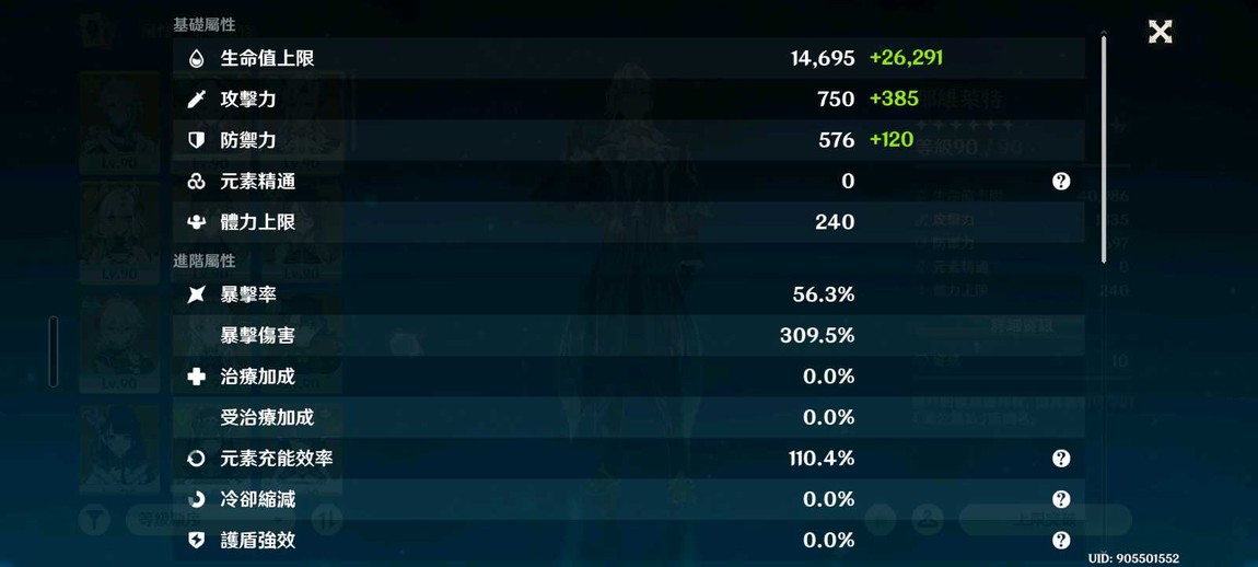00克洛林德、拉烏瑪、芙寧娜、白朮、娜西妲、萬葉、夜蘭、奈芙爾、希諾寧、雷電將軍、鍾離