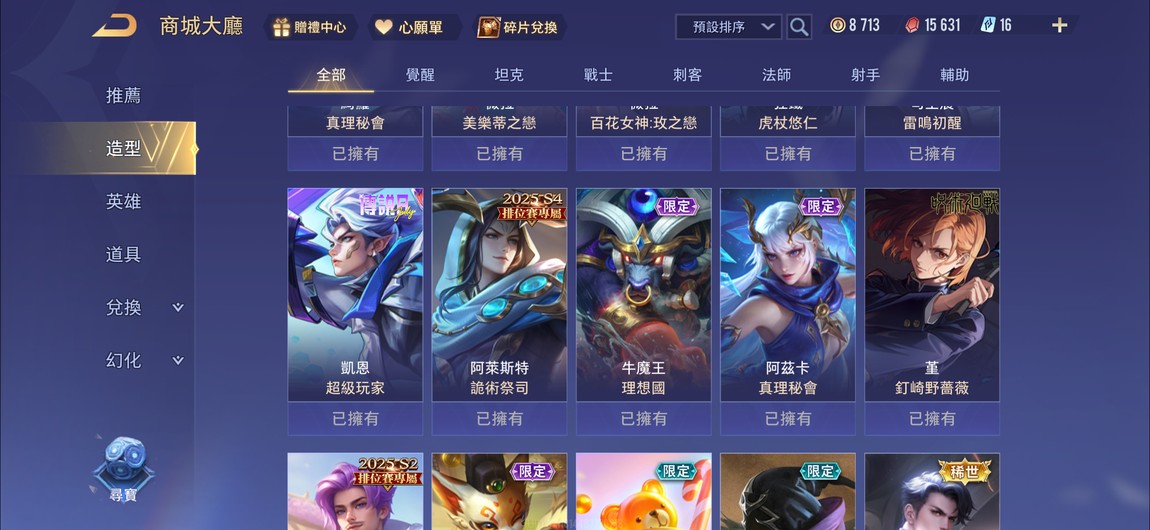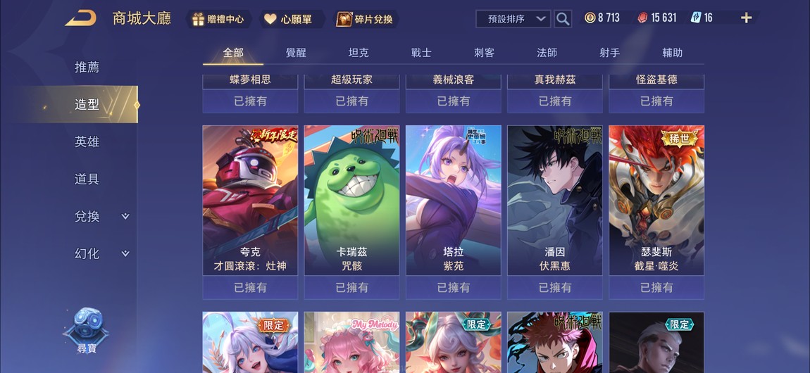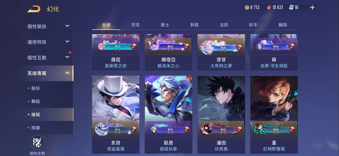 【Garena帳無綁無連、鑽石、V6、52英、100造】單冠王.歷史璀璨伏黑惠.虎杖悠仁.釘崎野薔薇.怪盜基德.美樂蒂.紫苑.咖波.截星