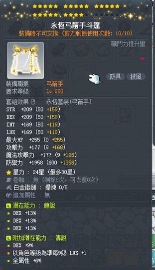 【永恆弓箭手斗篷】雙傳24星39%敏永恆弓箭手斗篷 附加96敏大雙~