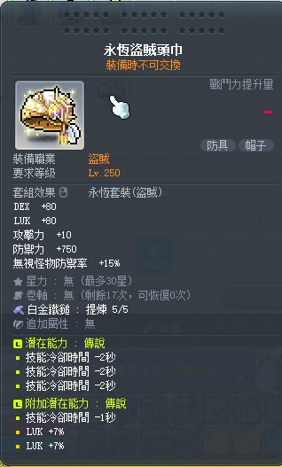 【永恆盜賊頭巾】完美六排-777永恆盜賊頭巾 -7cd14%幸永恆盜賊頭巾 白5沒捲~