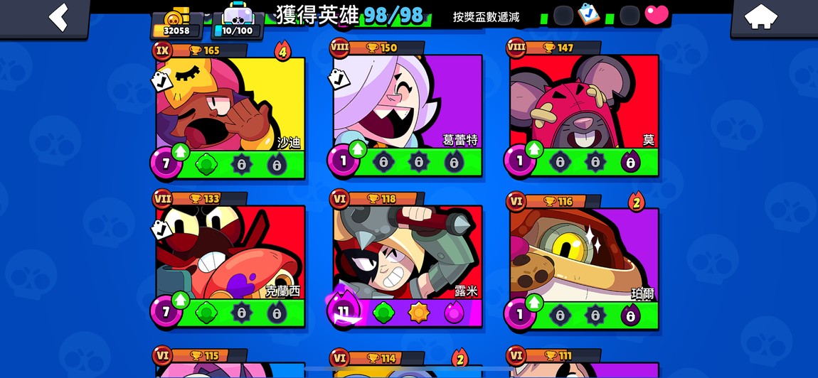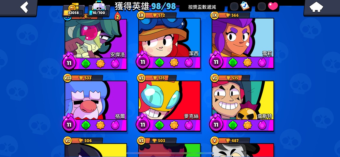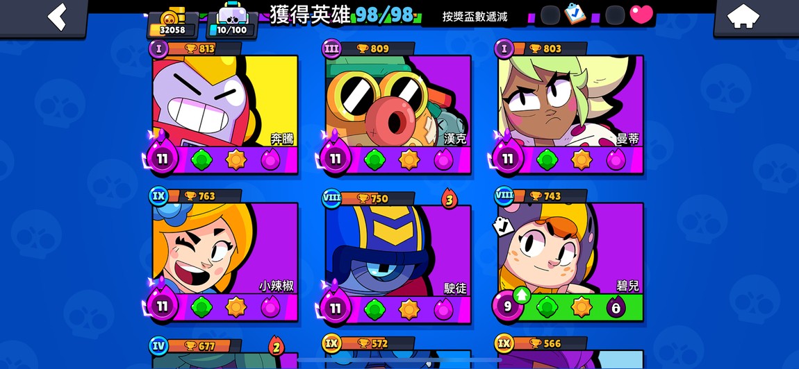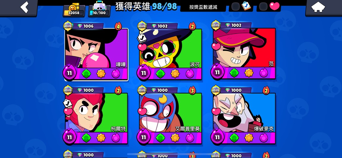 99隻英雄 38隻滿等。12隻1000盃
