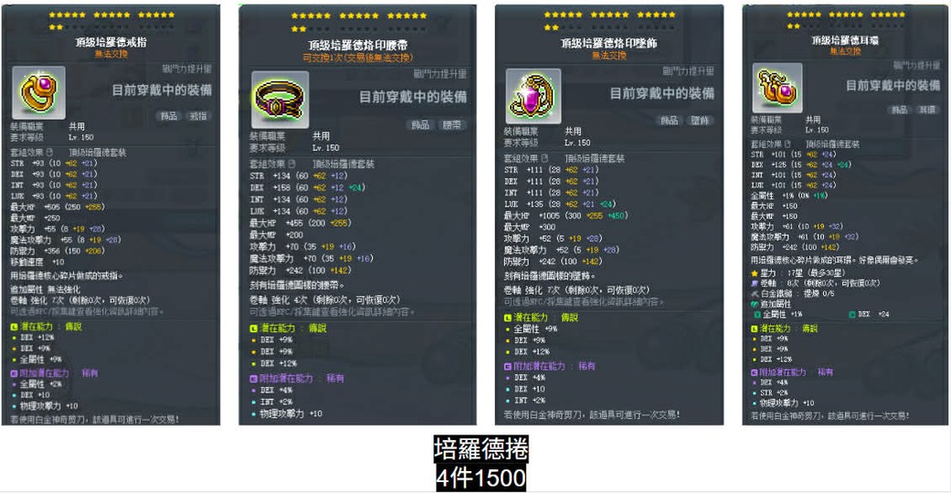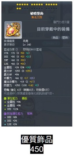 | 裝備 | 星力 | 主潛 | 附加 | 卷軸 | 價錢 | |